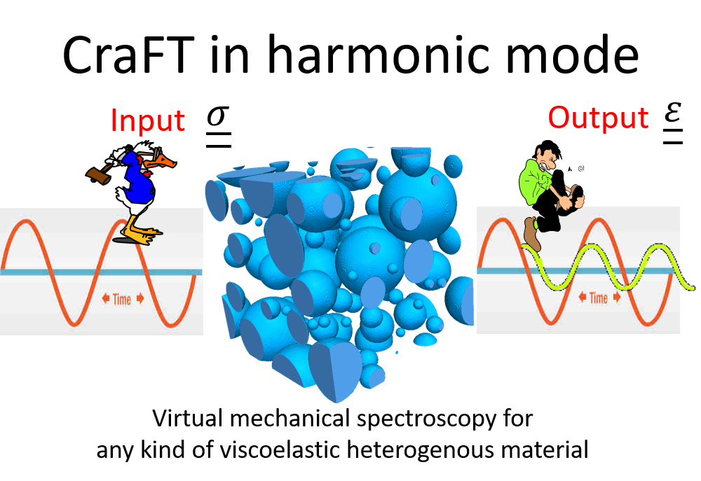 CraFT virtual DMA is a special version of CraFT dedicated to simulate DMA experiments on composites made of viscoelastic materials. Having recourse to the correspondence principle, it gives access to the effective conservative and dissipative moduli of any heterogenous material described through a voxel grid. CraFT virtual DMA sources can be downloaded here. [Lien à mettre pour télécharger les sources: Julien/Ludo]