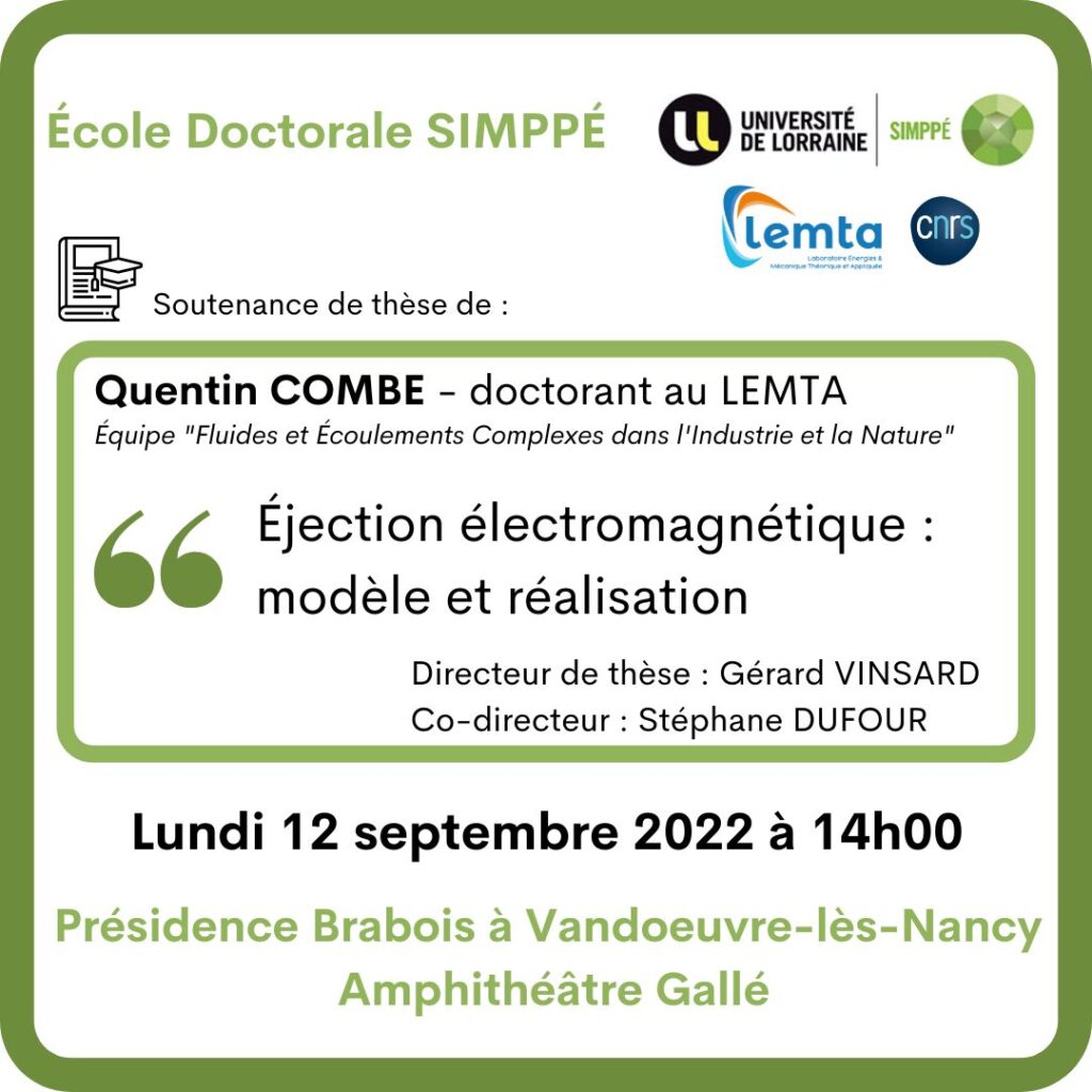 Quentin COMBE, doctorant au sein de l’équipe « Fluides et Écoulements Complexes dans l’Industrie et la Nature » soutiendra ses travaux de thèse intitulés :