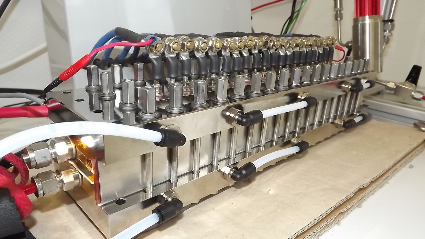 Le projet de maturation Thermistack (2018-2019) visait à valoriser un brevet du LEMTA (WO/2014/060198. 2014) pour développer un prototype de stack PEMFC de 5 kW selon une architecture innovante permettant de limiter les dégradations par un contrôle thermique différencié des anodes et de cathodes. Cette architecture pourrait répondre à des besoins de production d’énergie stationnaire (par exemple petit bâtiment collectif BBC).