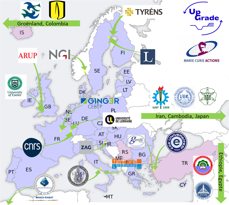 Ce projet est porté par un consortium international et interdisciplinaire réunissant 10 partenaires académiques, 5 partenaires industriels et 6 institutions de pays tiers. Ensemble, ils forment un réseau de chercheurs prêts à relever les défis géotechniques et géoenvironnementaux les plus complexes, positionnant UPGRADE à la pointe de l’innovation technologique.