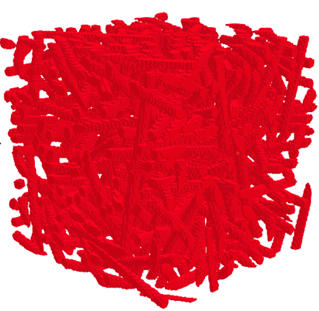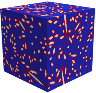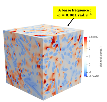 Figure 1 : Simulation numérique d’un composite époxy à 17 % de fibres de verre, discrétisé sur un maillage de 128³ voxels.