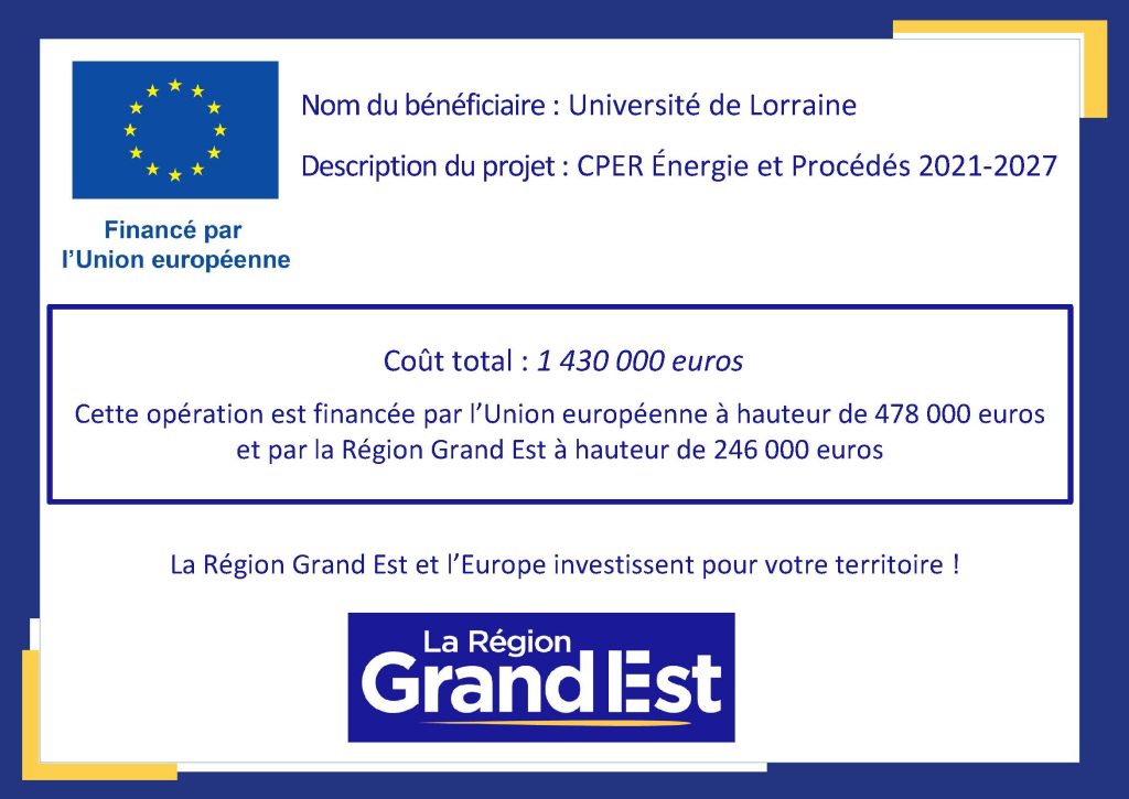 Le LEMTA est partenaire de ce projet soutenu par l’Union Européenne dans le cadre du Contrat de Plan État-Région (CPER)