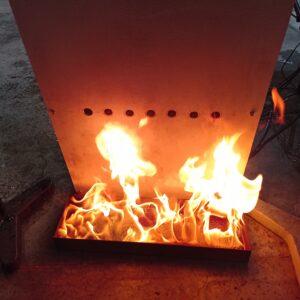![]() « Vieillissement contrôlé » des sept fluxmètres à l’aide d’une flamme de fioul permettant le dépôt de suies sur les capteurs |